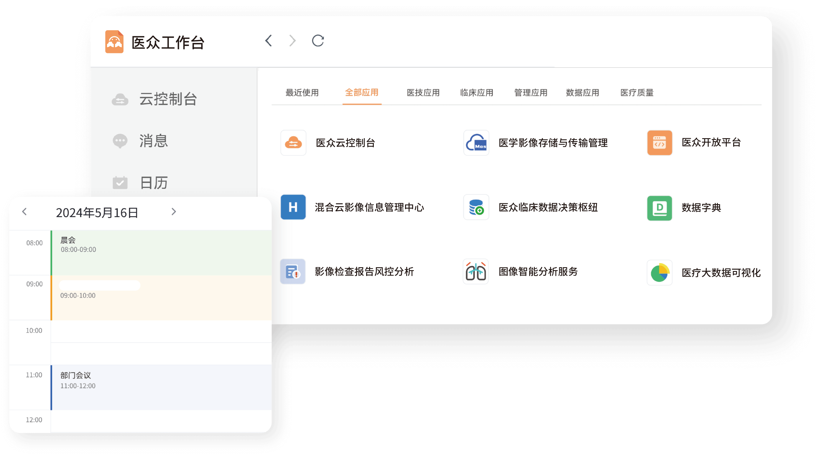 醫(yī)眾工作臺(tái)是承載醫(yī)眾全部數(shù)據(jù)能力與功能的應(yīng)用框架,采用 Docker 技術(shù)進(jìn)行分布式部署。每一位用戶(hù)都擁有完整且獨(dú)立的云端節(jié)點(diǎn)。